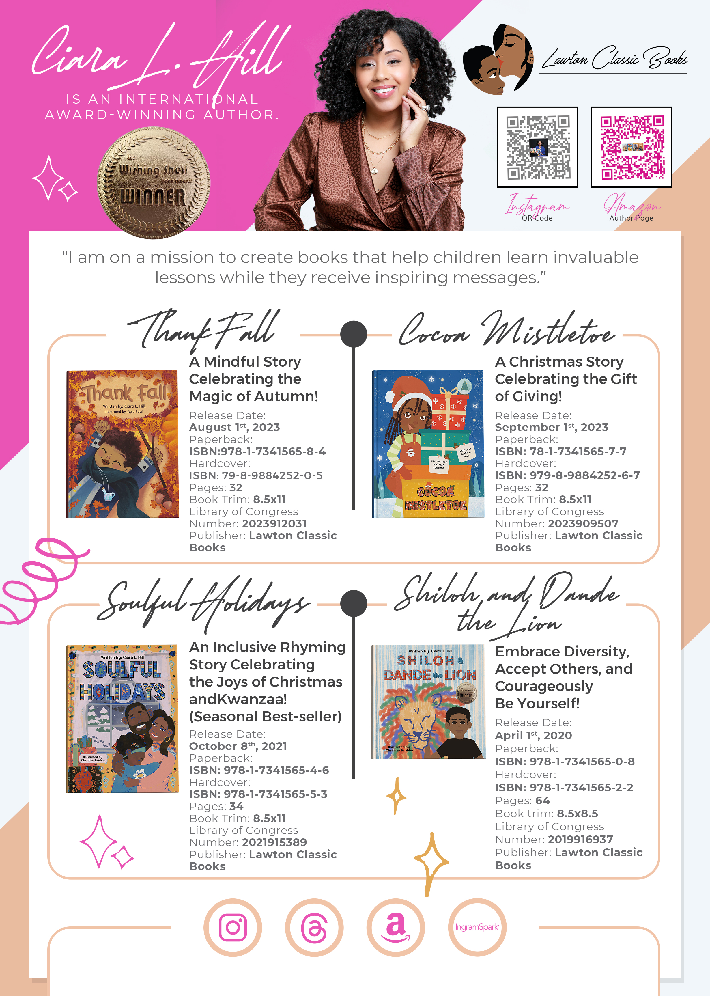 Explore a curated visual display of my published works. Each cover featured here represents a unique story, message, or experience, with key details like genre, synopsis, and publication info included for quick reference. This sheet offers a snapshot of my journey as an author—designed to inform, inspire, and connect with readers, publishers, and collaborators alike.